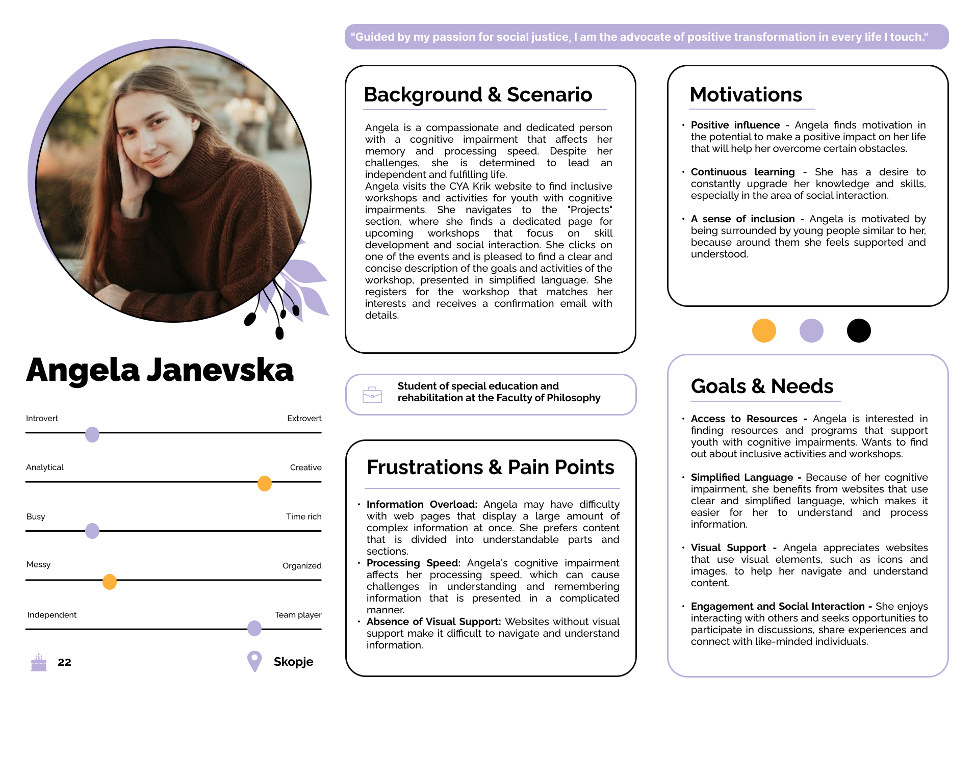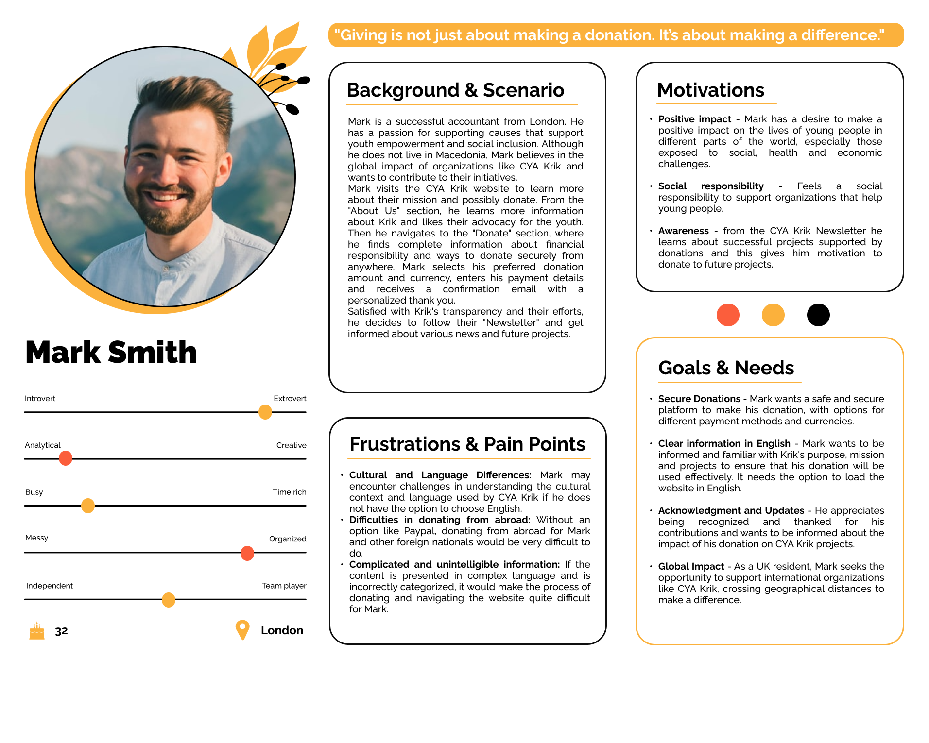 With no visuals to guide us, we turned to the stories Krik shared. Angela, a young girl seeking accessible projects, and Mark, a philanthropist backing youth activism, became our guiding personas. Their stories shaped the canvas for our digital journey.