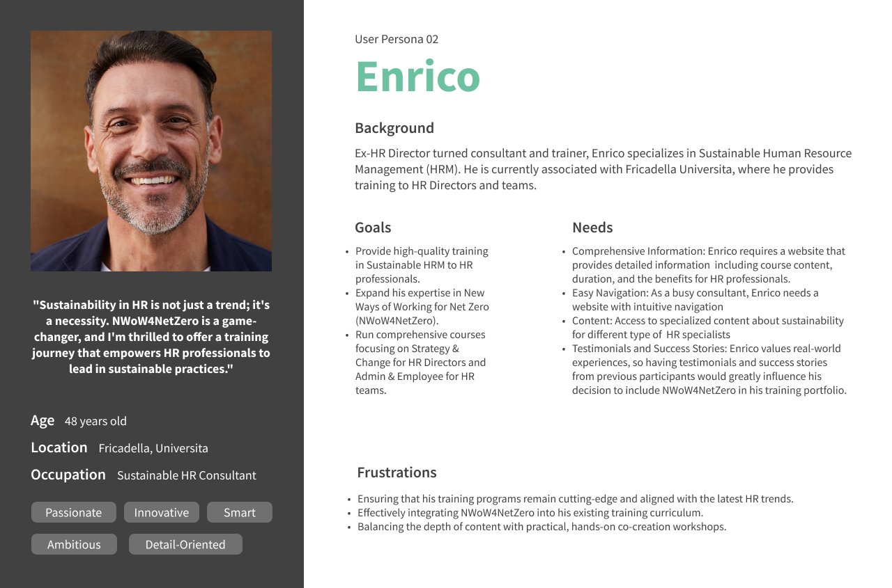 Step into the shoes of Elena, our tech-savvy HR Manager from Skopje, or join Enrico, the Sustainable HR Consultant and Trainer extraordinaire. These personas helped us craft a strategy tailored to the needs of our superhero HR professionals.